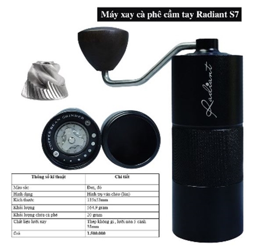 Radiant S7 thể hiện rõ sự quan tâm của nhà sản xuất đến từ phân khúc giá sản phẩm, giá thành hợp lý dành cho người chơi nhập môn – hoặc đơn giản là những khách hàng không dành quá nhiều ngân sách cho một chiếc cối xay thủ công. Radiant S7 đã khá nổi tiếng với người thích Espresso vì khả năng điều chỉnh cỡ xay siêu nhỏ, pha phin, pha pour over.