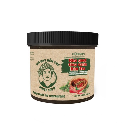 Sản phẩm kho quẹt tiêu xanh Gungon có hương vị mặn mặn của mắm, ngọt của đường, cay của tiêu xanh và ớt.