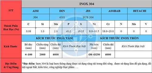 - nox 304 là mác thép theo tiêu tuẩn JIS của Nhật, hay còn gọi là thép không rỉ 304.