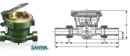 Đồng hồ đo lưu lượng nước Sanwa là dòng sản phẩm của hãng Asahi Thái Lan được sản xuất theo tiêu chuẩn ISO 9001:2000 chuyên dụng cho các hộ gia đình, xí nghiệp hay khu chung cư. Với nhiệm vụ đo lưu lượng nước chảy để những công ty cung cấp nước có thể tính được lượng nước cung cấp chính xác, làm căn cứ quyết toán chi phí.