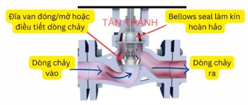 Bộ phận bellows seal có hình dạng như một “ống thổi”, có tác dụng co giãn theo suốt hành trình đóng mở của van, mang lại khả năng làm kín hoàn hảo.