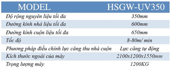 Thông số kỹ thuật Máy in Flexo HSGW-UV350