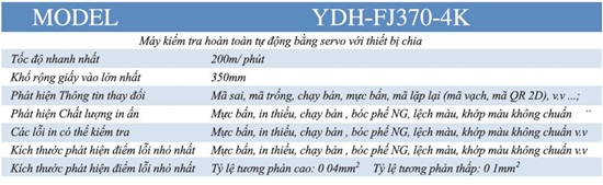 Thông số kỹ thuật Máy kiểm tra tự động YDH-FJ370-4K