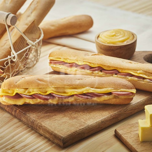 Thành phần: Bánh mì que, Xúc xích, Bơ trứng gà, Phô mai