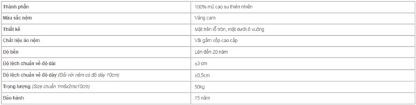 Sản xuất 100% từ cao su thiên nhiên tinh khiết với những đặc điểm như độ đàn hồi cao, độ bền tốt, nâng đỡ cơ thể hoàn hảo.