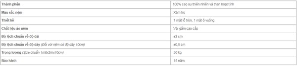Nguyên liệu sạch an toàn cho sức khỏe: Sản xuất dựa trên sự kết hợp hài hoà của 2 chất liệu cao su thiên nhiên chắt lọc, khử trùng loại bỏ tạp chất kỹ càng và than hoạt tính cho khả năng kháng khuẩn, khử mùi, lọc không khí hiệu quả mà vẫn giữ được độ êm ái, đàn hồi tối ưu.