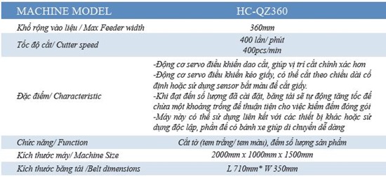 Bảng thông số kỹ thuật của máy dao cắt giấy HC-QZ360