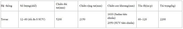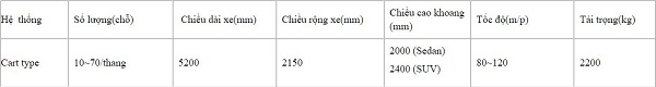 Thông số kỹ thuật hệ thống đỗ xe dạng cart