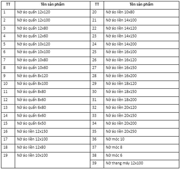 Bảng thông số sản phẩm