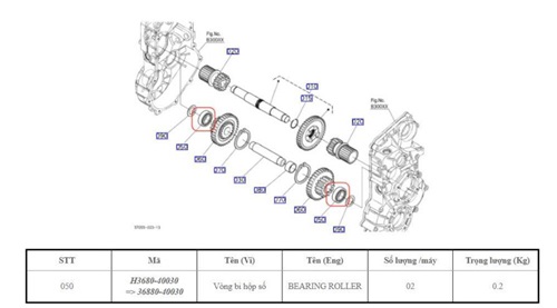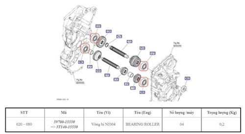 *Ứng dụng: Bộ đôi vòng bi (bạc đạn) NJ304, NJ206 cho hộp số máy gặt Kubota DC-70.