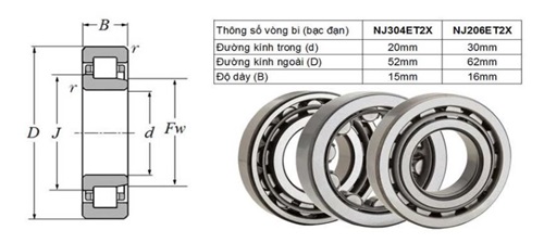 *Thông số kỹ thuật vòng bi NJ304, NJ206: