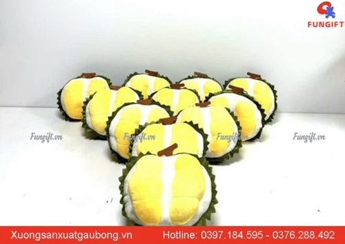 Các nhân vật hoạt hình hay những con thú đáng yêu, ngộ nghĩnh bằng bông luôn nhận được sự yêu thích và ưa chuộng của nhiều người, nhất là các em nhỏ. Hiện nay, trên thị trường có rất nhiều cơ sở sản xuất và phân phối thú nhồi bông đa dạng mẫu mã, chất lượng, kích thước,... Nổi bật là Công Ty TNHH FUNGIFT Việt với sản phẩm Gấu bông sầu riêng làm từ chất liệu vải nhung cao cấp, mềm mịn, đường may tỉ mỉ, tính thẩm mỹ cao.
