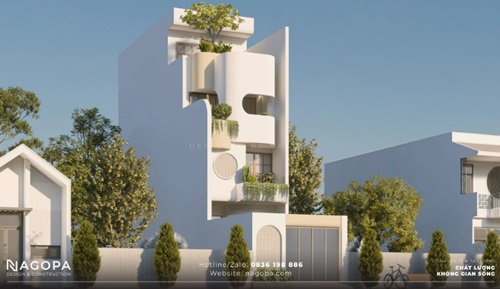 Nhà phố 4 tầng phong cách Địa Trung Hải