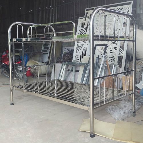 Mẫu giường 2 tầng bằng inox rất được ưa chuộng vì độ nhỏ gọn, có khả năng tiết kiệm diện tích cho ngôi nhà của bạn và thời gian sử dụng lâu dài. Giường inox 2 tầng có những ưu điểm nổi bật của chất liệu thép không gỉ như chống ăn mòn, chống gỉ sét và ít bám bụi, nên được sử dụng phổ biến tại các dãy phòng trọ, kí túc xá, homestay hay căn hộ và gia đình có diện tích nhỏ.