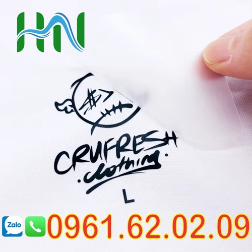 - Với quy trình ép nhiệt đơn giản, những hình ảnh này sẽ chuyển lên hoàn toàn bề mặt quần áo. Hoàn thành mức độ nhận diện thương hiệu cũng như truyền tải những thông điệp của nhãn hàng vào trong từng sản phẩm đến tận tay khách hàng.