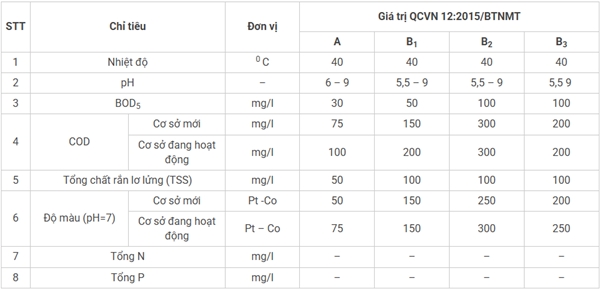 Nước thải sau khi xử lý đạt chuẩn cột A QCVN 12:2015 BTNMT