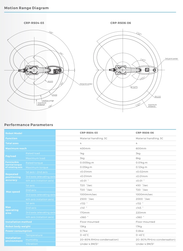 ✅ Hai lựa chọn sải tay: 600mm và 400mm tải trọng 3kg hoặc 6kg.