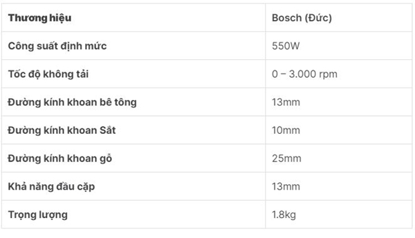 3. Thông số của máy khoan có dây Bosch GSB𧌦