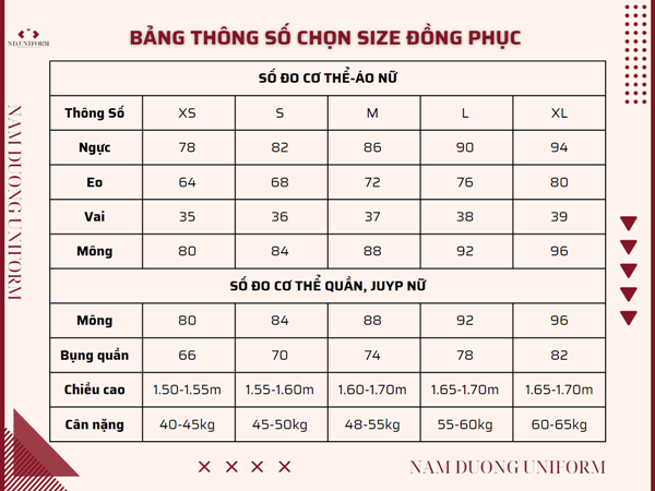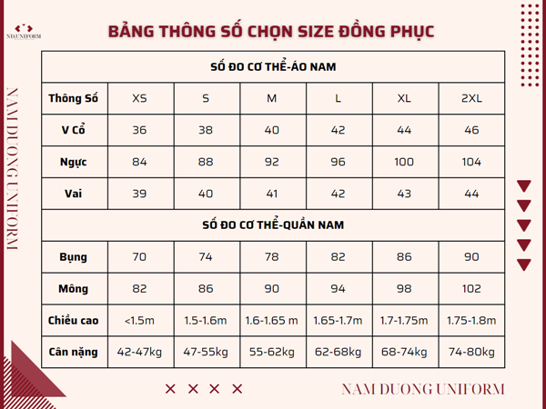 Bảng size áo khoác kaki công nhân