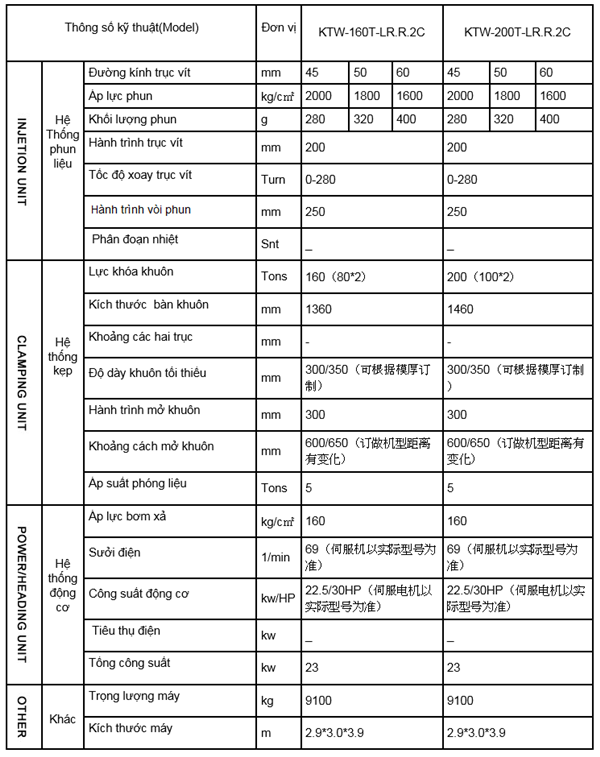 2. Thông số của máy ép nhựa TWSK-160T-LR.R.2C