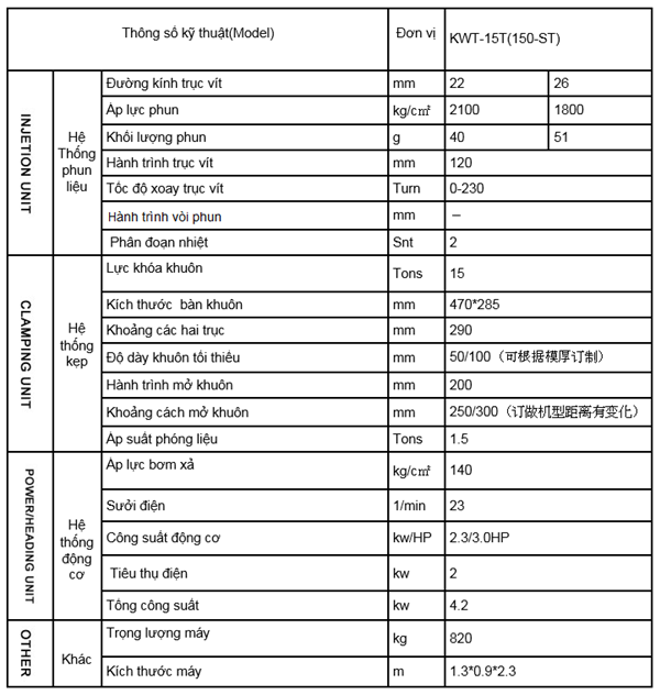 2. Thông số của máy ép nhựa TWSK-15T.H