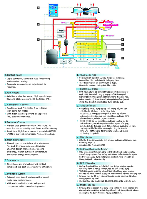 - Nhiệt độ điểm sương đạt được từ -40 đến -70 độ