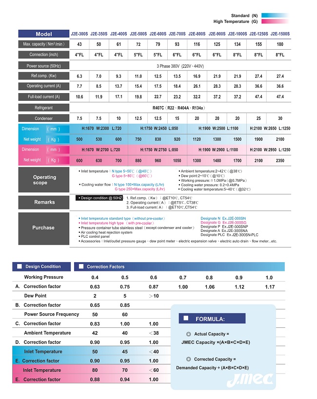 - Máy sấy khí nén lạnh JMEC J2E-III là dòng sản phẩm đến từ Đài Loan, được thiết kế để loại bỏ hơi ẩm trong khí nén bằng phương pháp làm lạnh, giúp bảo vệ thiết bị và nâng cao hiệu suất hệ thống khí nén. Dưới đây là những thông tin chi tiết về dòng máy này: