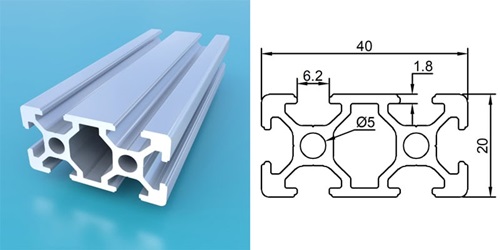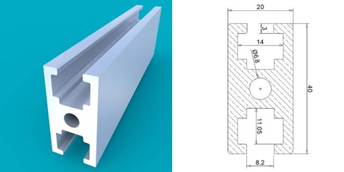 ─ Thanh nhôm 20×40 là thanh nhôm dạng mỏng, có bề dày trung bình, thường dùng làm khung băng tải mini hoặc khung máy cnc cỡ nhỏ, mô hình trường học.