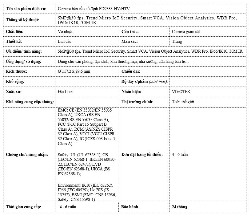 1. Camera Bán Cầu Cố Định Fd9383-Hv/Htv