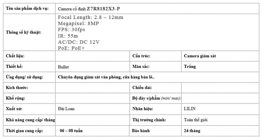 1. Tổng quan về Camera cố định Z7R8182X3-P