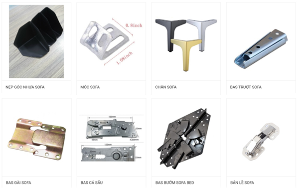 Là các bộ phận cấu thành hoặc hỗ trợ, dùng để lắp ráp, hoàn thiện và tăng chức năng cho sofa như: