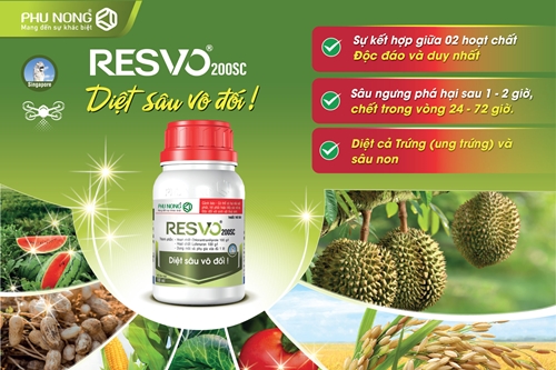 Sản phẩm Resvo 200SC có độ phân tán tốt, thẩm thấu nhanh quản lý sâu hại một cách toàn diện, hiệu quả trong đó có nhóm sâu miệng nhai và đạt hiệu lực sinh học cao qua các thử nghiệm tại Trung tâm kiểm định và khảo nghiệm thuốc BVTV của Cục BVTV.
