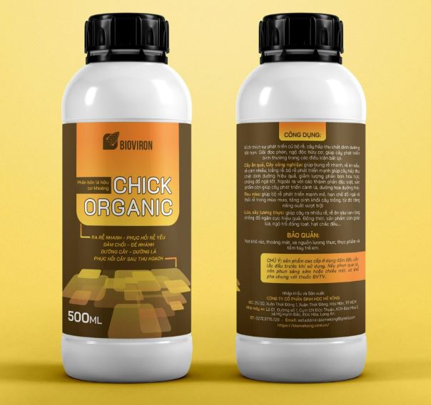 Phân bón hữu cơ khoáng Chick Organic được Biomekong nhập khẩu và phân phối dưới thương hiệu Bioviron. Đây là dòng phân bón lá sinh học kết hợp giữa chất hữu cơ hàm lượng cao và khoáng chất tự nhiên, chuyên được thiết kế để tăng cường bộ rễ, cải tạo đất phèn và phục hồi cây trồng sau stress hoặc thu hoạch ﹣ đạt hiệu quả rõ rệt trên cây lúa, hồ tiêu, cây ăn trái và rau màu