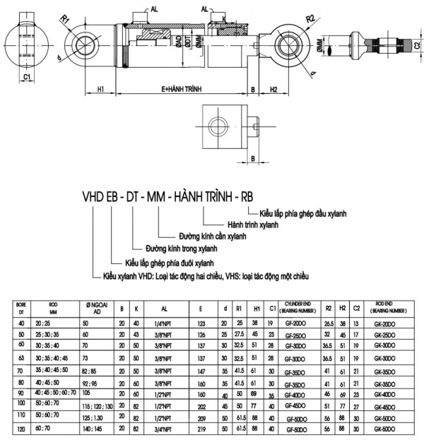 ⚙️ Thông số kỹ thuật xi lanh khớp cầu EB–RB