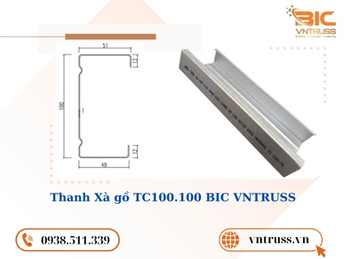 Thanh xà gồ thép TC100100 thương hiệu BIC VNTRUSS do Công Ty Cổ Phần BIC GROUP sản xuất từ thép cường độ cao mạ hợp kim nhôm kẽm Zincalume G550 - AZ100/AZ150/AZ200, đáp ứng tiêu chuẩn chất lượng TCVN nghiêm ngặt. Sản phẩm có thiết kế định hình chữ “C” với 2 sóng gân tăng cứng, mang lại khả năng chịu lực vượt trội, chống ăn mòn tối ưu và độ bền lên đến 20 năm.