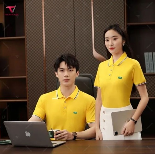 Với thiết kế viền kẻ ở cổ áo và tay áo kết hợp cùng tone màu vàng nổi bật đã tạo nên sự khác biệt cho mẫu áo đồng phục cơ quan của công ty bạn, phù hợp cho đồng phục nữ công ty đẹp kết hợp cùng áo vest nữ đồng phục công ty . Đối với nam có thể kết hợp áo đồng phục công ty với áo vest hoặc giày tây để tăng sự lịch lãm trong trang phục công ty,..