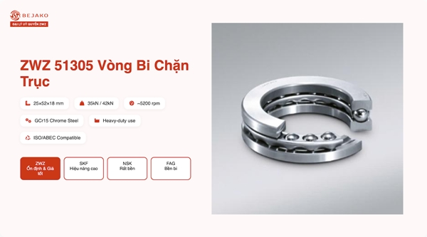Vòng bi cầu chặn trục ZWZ 51305 chính hãng mang lại ba lợi ích vượt trội mà hàng giả không thể thay thế.