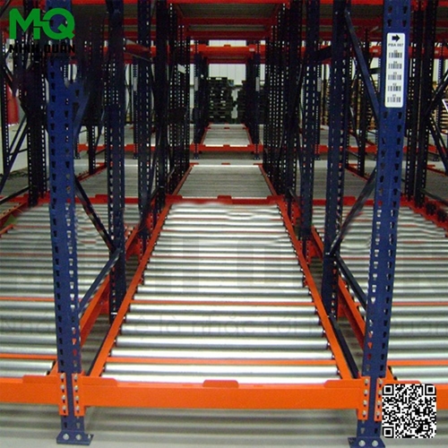 Các pallet hoặc thùng hàng được đặt lên dãy con lăn nghiêng trên Kệ Con Lăn, cho phép chúng tự động di chuyển về phía trước khi có một pallet khác được lấy ra. Điều này giúp tiết kiệm thời gian và công sức trong việc di chuyển hàng hóa.