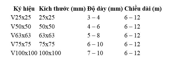 Quy cách thép hình V được phân phối tại Huyền Thanh