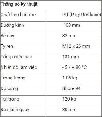 BÁNH XE PU100X32 CÀNG THÉP XOAY KHÓA M12 CASTER SERIE 2