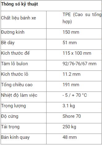 BÁNH XE CAO SU HI-TECH PERFERMA 150X50 CÀNG XOAY KHÓA HÔNG CASTER SERIE 4 TIÊU CHUẨN USA