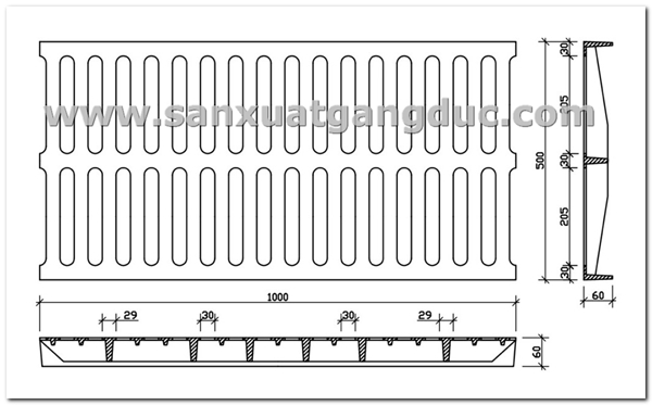Phần lưới chắn rác: Được tạo nên bới các thanh dài hình trụ hoặc hình chữ nhật kết nối với nhau. Cấu tạo đặc trưng này được lấy ý tưởng từ các khe hẹp trên khung của sổ. Các khe hẹp này đủ lớn để nước chảy quya nhưng vẫn có thể ngăn cản được rác thải.
